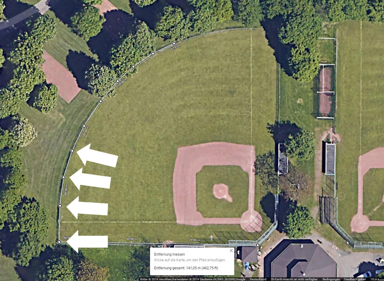 Ich zeige dir hier mal ein Beispiel. Ich nehme der Einfachheit halber ein Baseballfeld bei mir in der Nähe dafür.